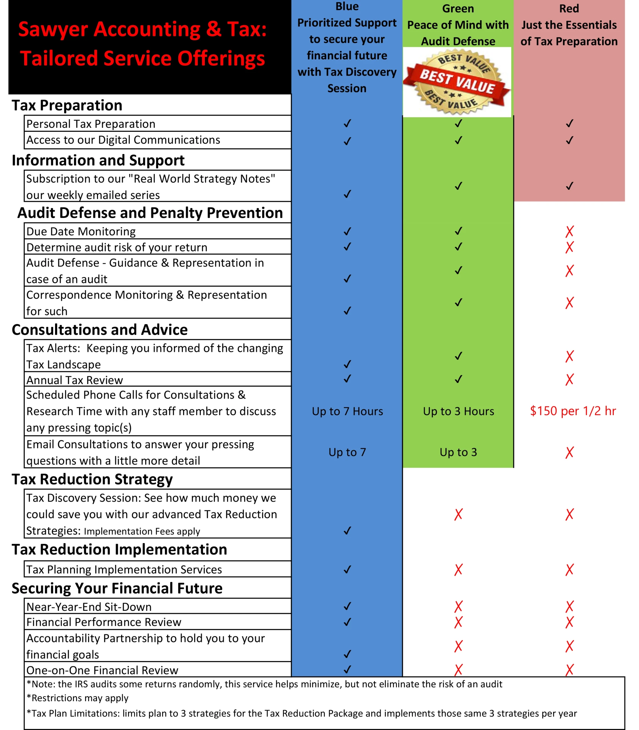 I'm so glad I found Raymond Sawyer. I have been using Sawyer One Stop for a three years now for both my Corp's accounting, taxes, and my personal taxes as well. They have kept their promises, and are yet to let me down. There have been occasions where I have requested services that were frankly outside of the scope of "accounting & taxes"; but once again Sawyer One Stop has been extraordinarily helpful for me and my business. Sawyer One Stop provides me with the advice, expertise, concern, and services that I need from a sound business ally. There are other accounting firms out there that can provide similar services, but none that genuinely care for me, or my company's well-being. Thanks Raymond! Recommend to ALL!